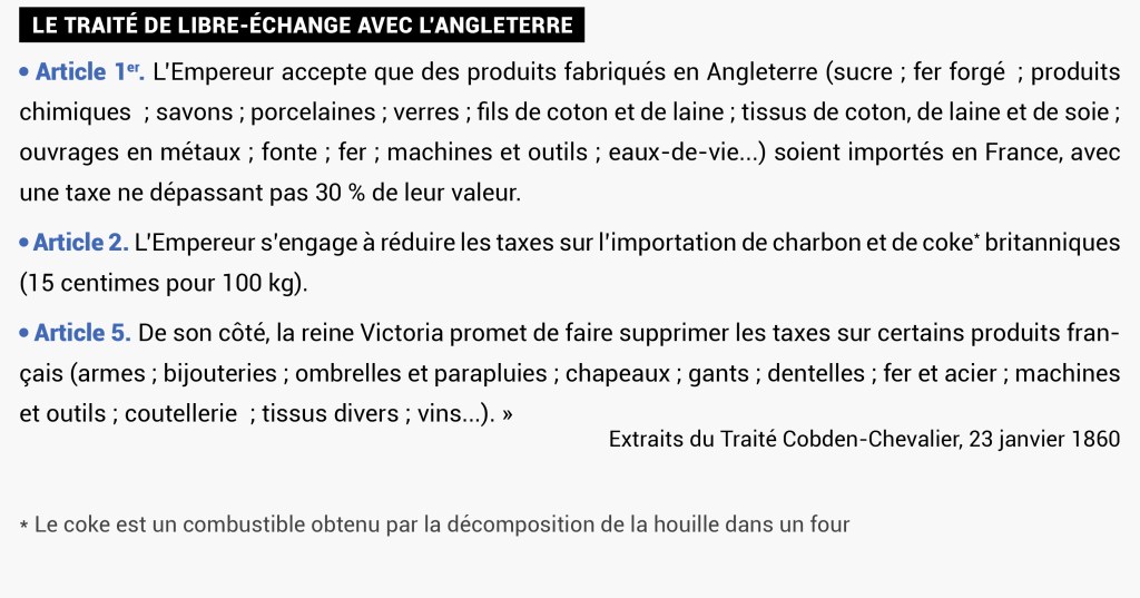 - 1860. Traité de libre-échange avec le Royaume-Uni