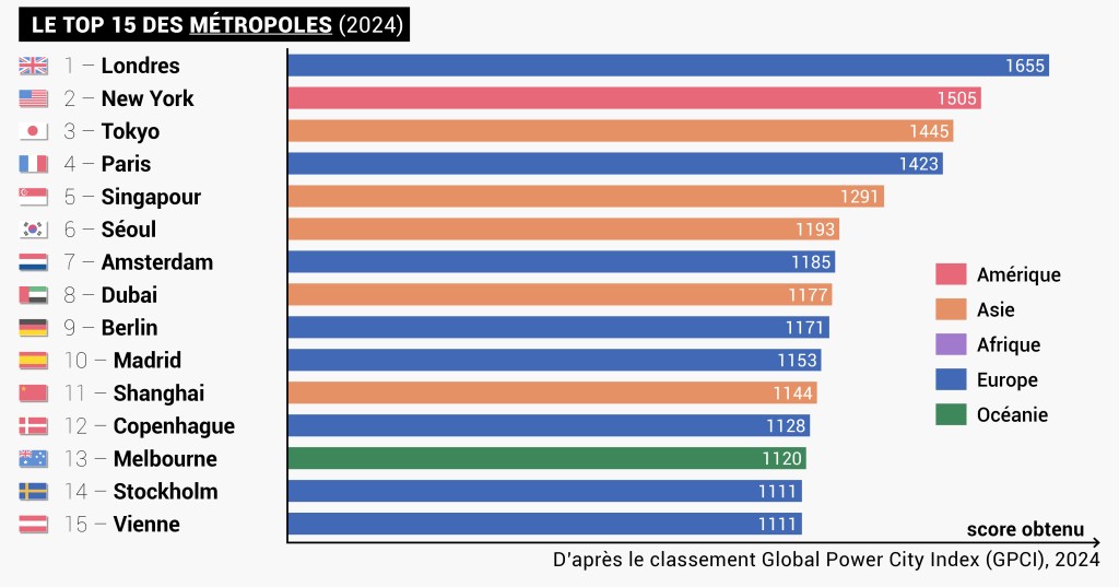 4. À l’aide du classement du Global Power City Index, montre que la métropolisation renforce le poids des principales métropoles.