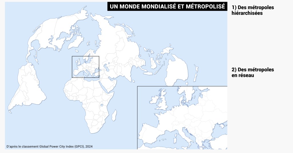 BILAN. À partir du classement GPCI, complète la carte afin de montrer que le Monde est aujourd’hui un espace mondialisé et métropolisé. 🔒