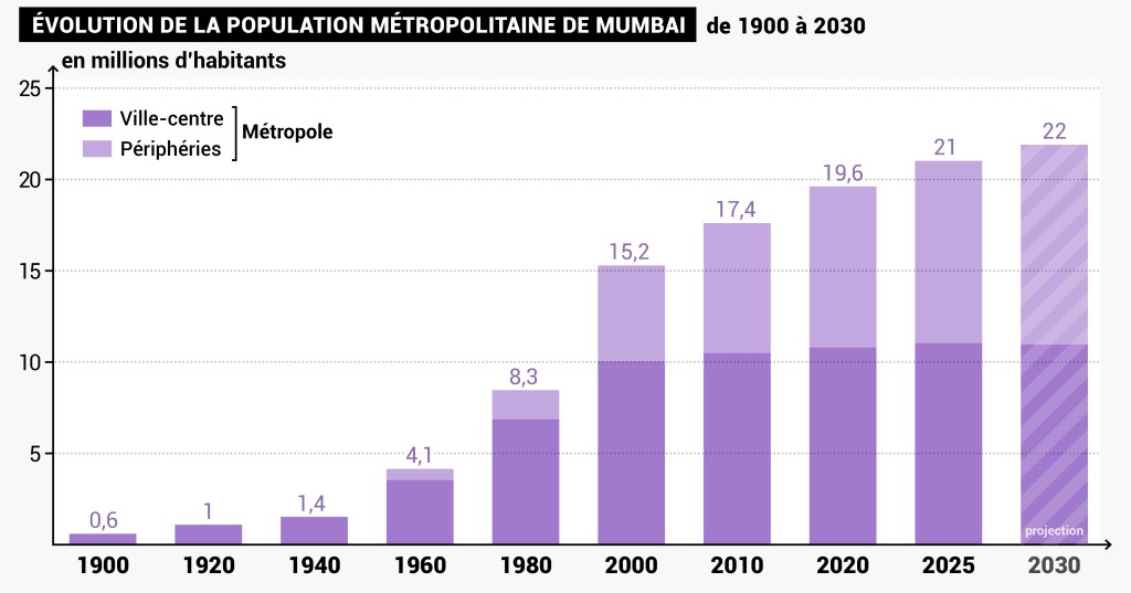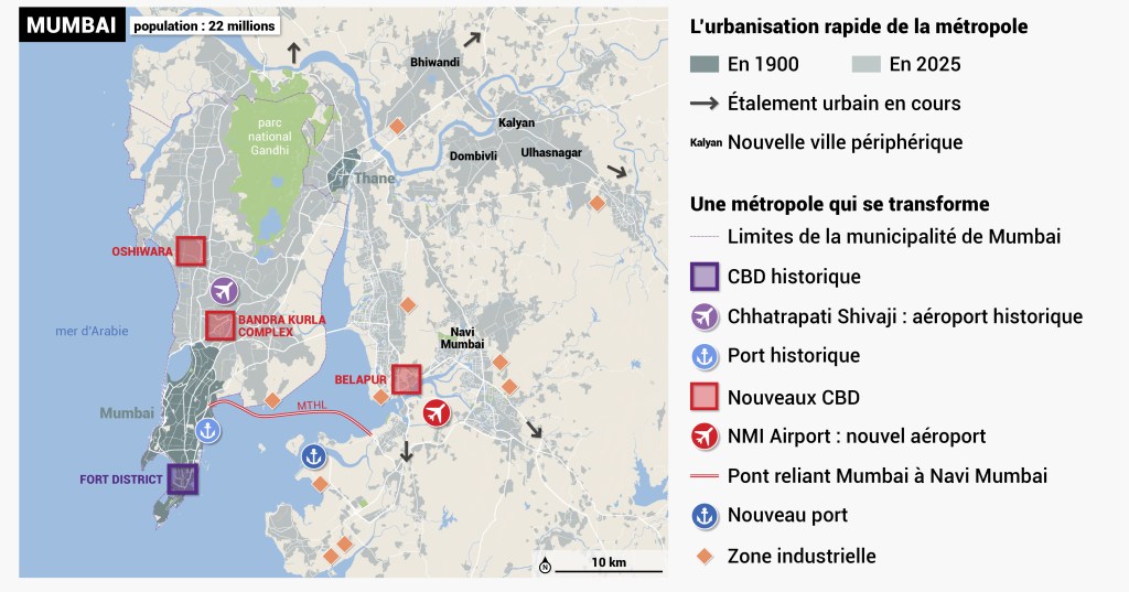 1. À partir de la carte de Mumbai, repère les deux principales dynamiques qui transforment actuellement les métropoles.