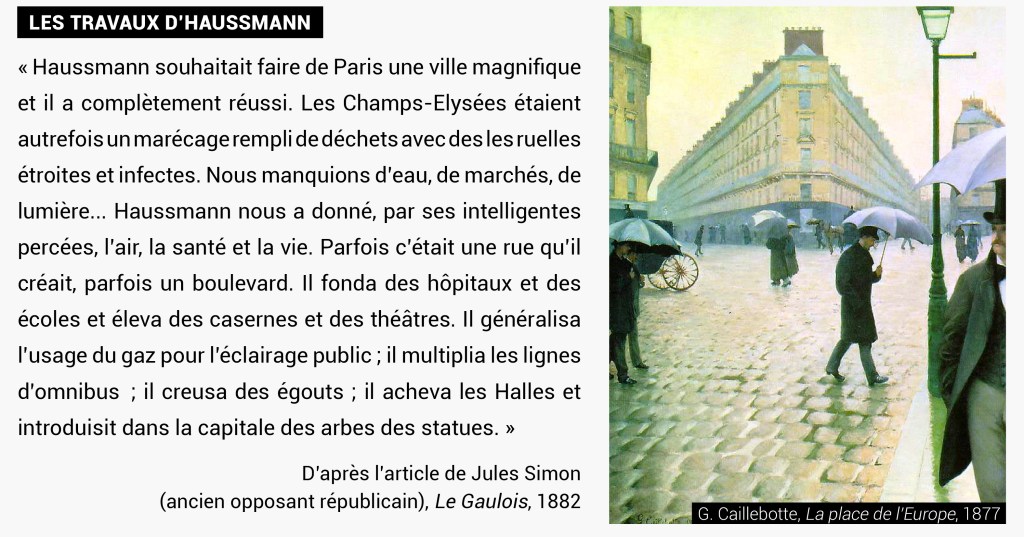 3. Montre que les transformations de Paris illustrent le triomphe de la bourgeoisie sous le Second Empire.