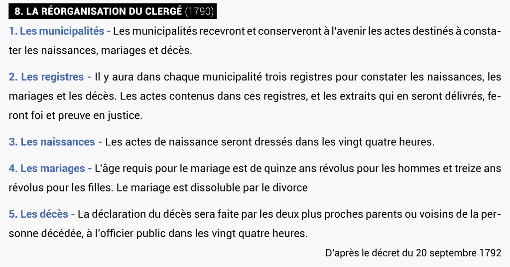- 20 septembre 1792. Institution d’un l’état-civil séculier et du divorce