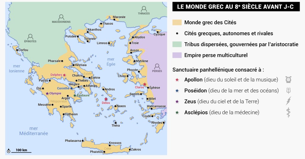 1. Localise le Monde grec au 8e siècle, puis présente son originalité.