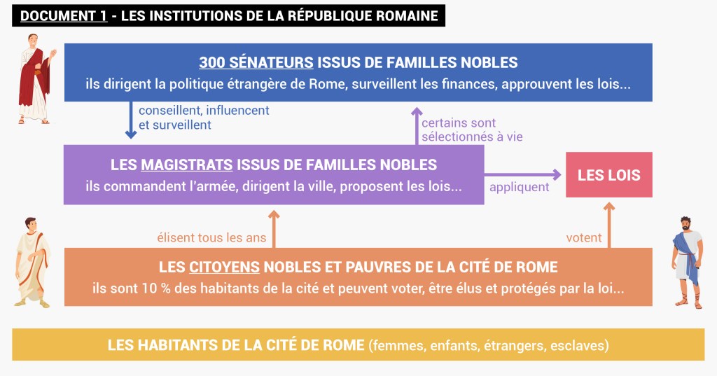 1. Montre que la cité de Rome est une république aristocratique du 6e siècle au 1er siècle avant notre ère.