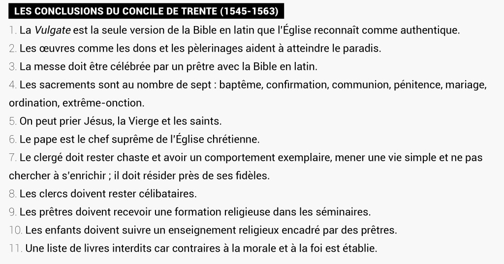 - 1545-1563. Le Concile de Trente tente de réformer l’Église catholique