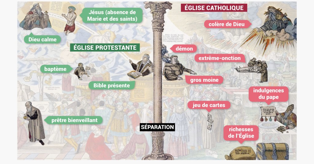 - Réforme protestante. Rupture avec l’Église catholique à partir du 16e siècle en Europe