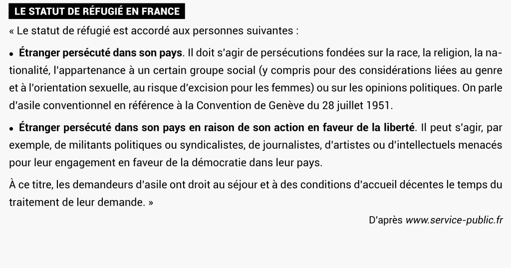 - Réfugié. Personne contrainte de quitter son pays pour des raisons politiques, ethniques ou climatiques