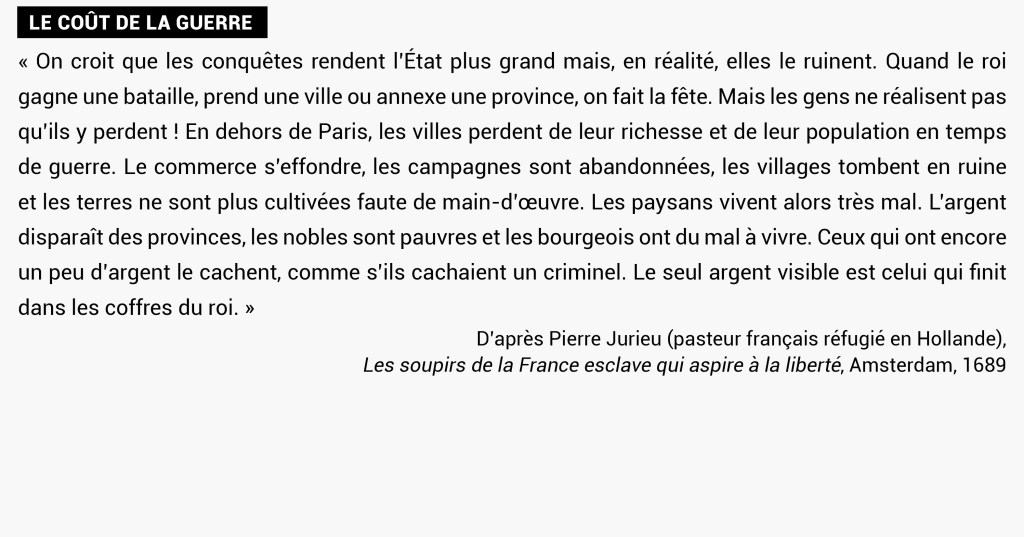 3. Montre que la politique guerrière de Louis XIV transforme le royaume de France autant qu’il la ruine.
