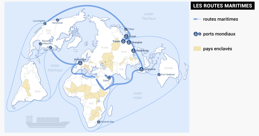 - Division internationale du travail. Répartition mondiale des productions en fonction des avantages de chaque espace