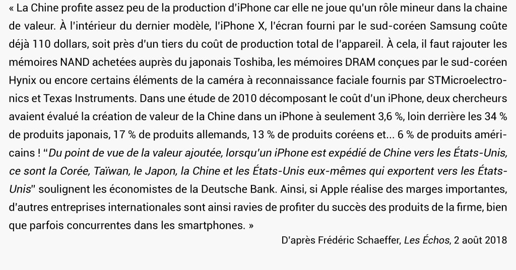 4. Pourquoi l’entreprise Apple cherche-t-elle aujourd’hui à multiplier les espaces de fabrication de l’iPhone ?