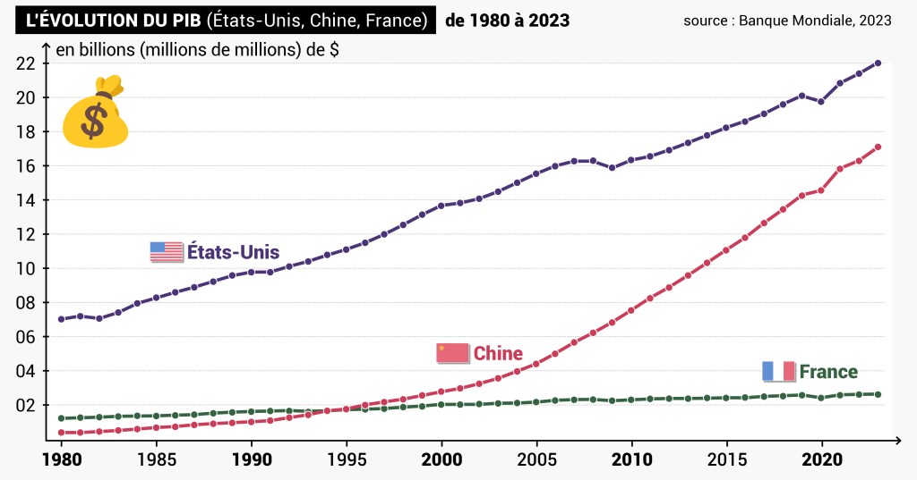 1. Montre que la Chine connait un développement économique accéléré depuis les années 2000.