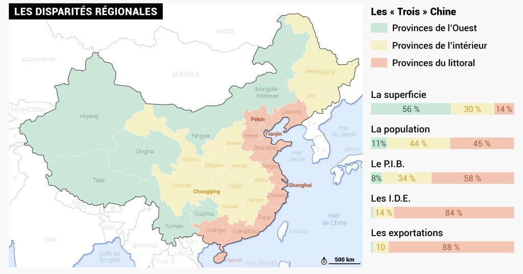 5. Montre que développement reste très inégal en Chine.